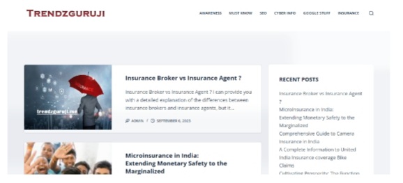 TrendzGuruji.me covers a wide range of categories including Awareness, SEO, Cyber Info, and Insurance. Each category provides detailed insights and updates about its respective field.